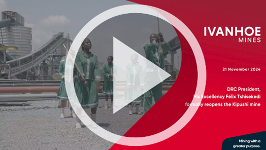 刚果民主共和国基普什 — 艾芬豪矿业 (TSX: IVN) (OTCQX: IVPAF) 执行联席董事长罗伯特·弗里兰德 (Robert Friedland) 、联席董事长郝维宝 (Weibao Hao) 与总裁玛娜·克洛特 (Marna Cloete) 欣然公布,刚果民主共和国 (以下简称“刚果(金)”) 总统费利克斯·齐塞克迪 (Félix Tshisekedi) 阁下于2024年11月17日正式重启基普什 (Kipushi) 超高品位锌–铜–铅–锗矿山。