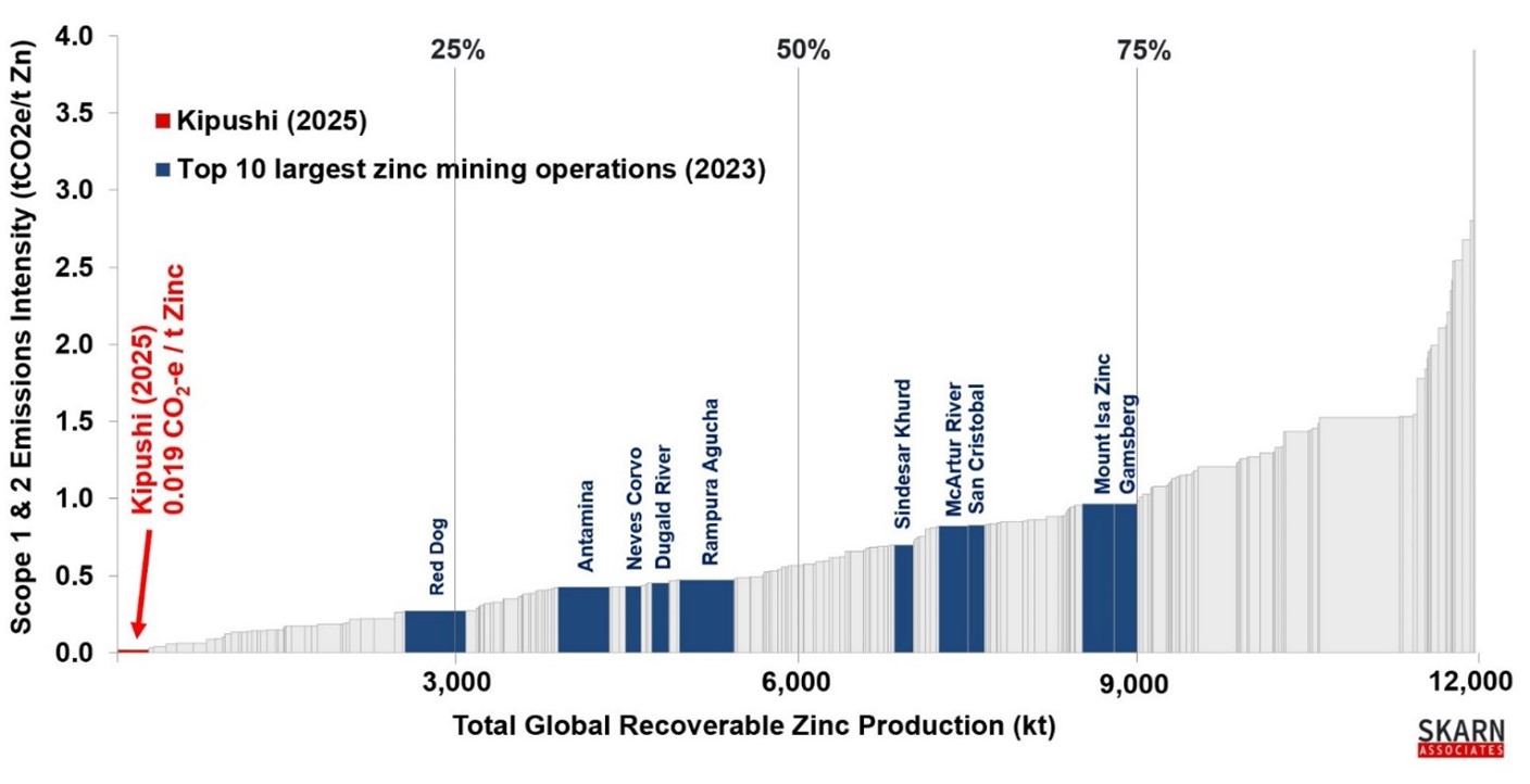 基普什是全球碳排放 (范围一和范围二) 最低的大型锌矿之一