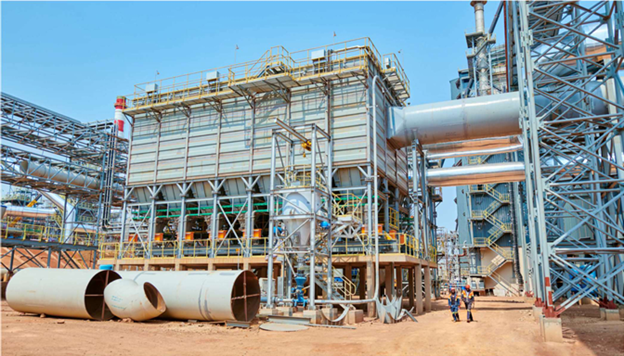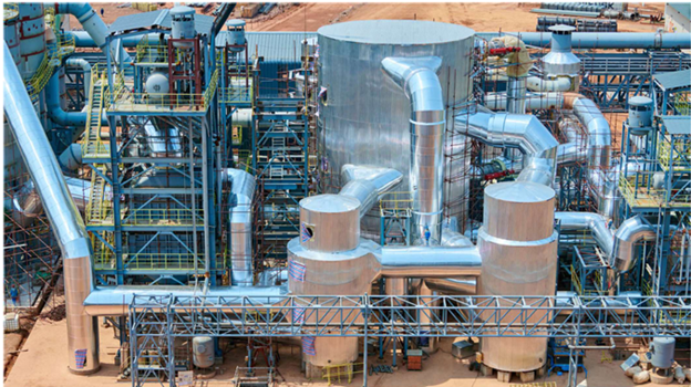 冶炼厂的保温废气处理管道可分离出炉气中的热能和酸。冶炼炉分离出的热能将会循环利用,余热发电产生 8 兆瓦的电力供给冶炼厂运营。