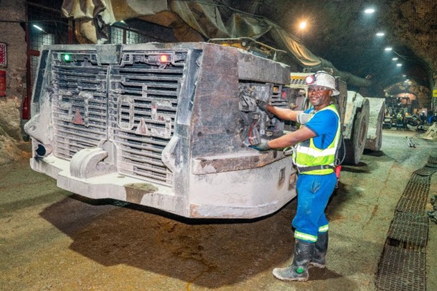 金诚信公司的技工Temwani Nyirenda 在基普什井下工作面进行安百拓铲运机的定期维护工作。
