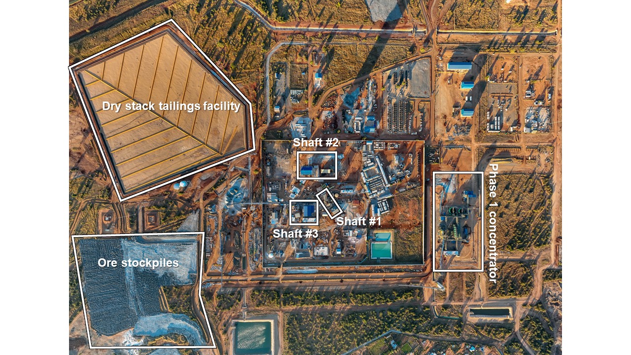 3号竖井正进行装配且进展顺利,预计于2026年第一季度开始提升作业。直径5.1米的竖井管筒已从地表延伸至950米底部,竖井装卸井口的挖掘工程也已经完成。井架和卷扬机的安装工作进展顺利,且卷扬机的机械安装也即将完成。