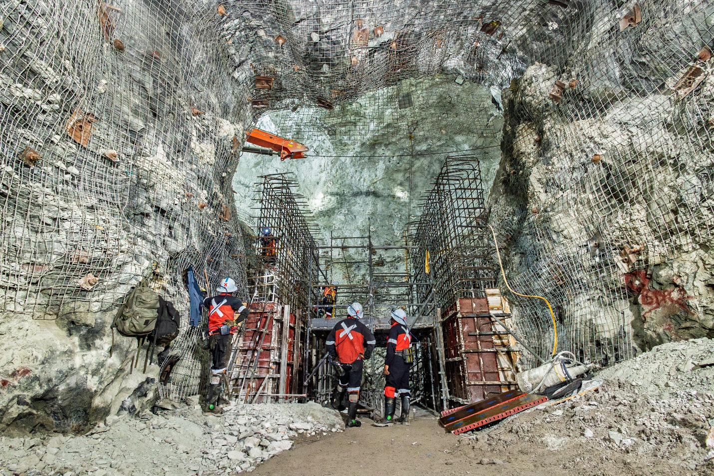 在普拉特瑞夫矿山950米中段井下破碎和筛分系统建设。爆破后的矿石首先经破碎机中破碎,然后提升至3号竖井。预计3号竖井將于2026年第一季度开始提升作业。