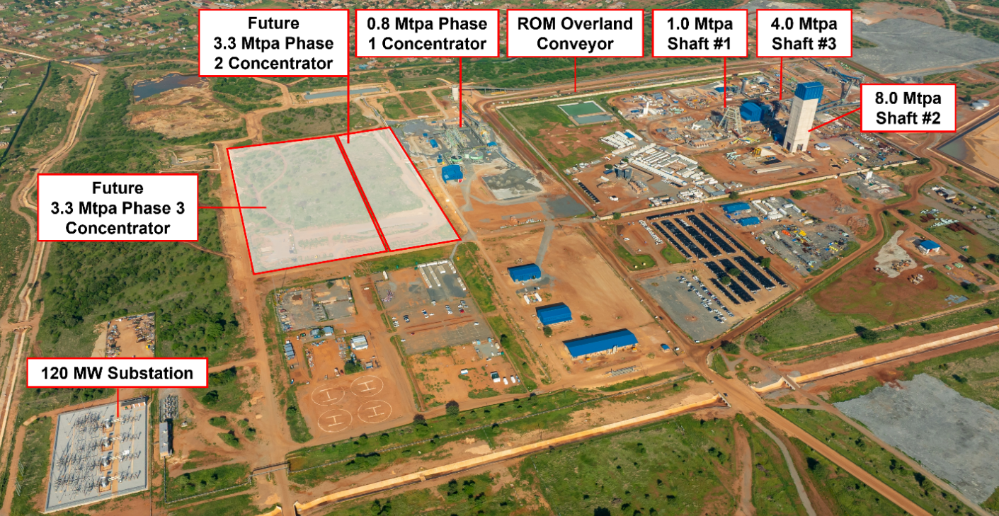 随着井下开拓工程推进,I 期选厂自2025年第四季度投产以来,一直处理较低品位的副产矿。预计即将在Flatreef矿体开始进行中深孔采矿,助力 I 期选厂实现产能爬坡,预计于2026年中实现商业化生产。