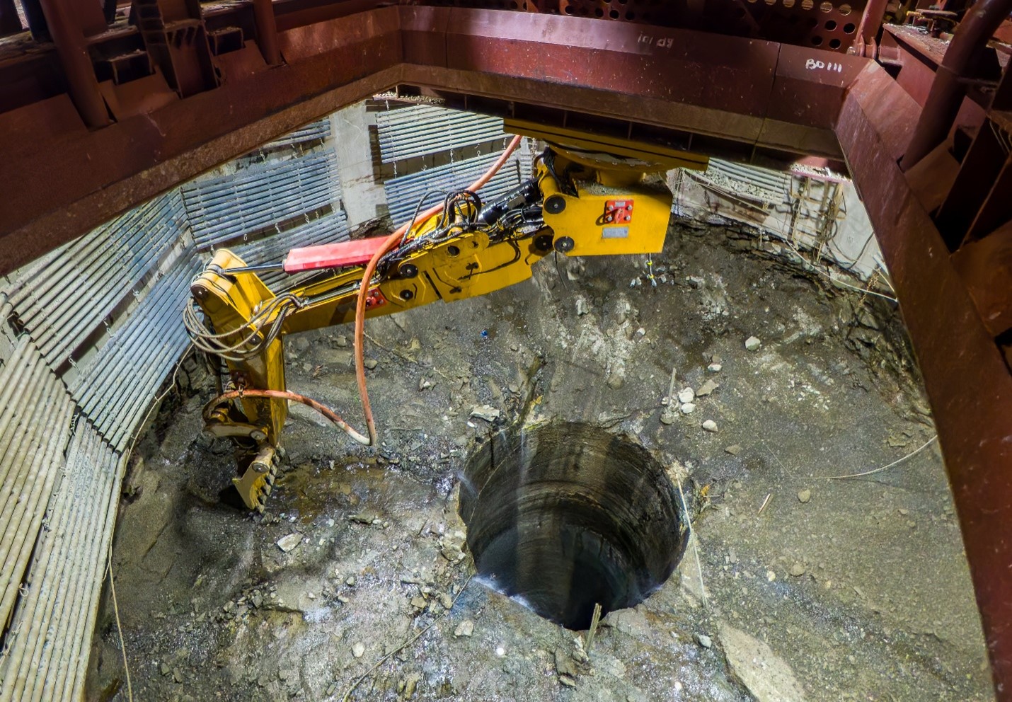 2号竖井进行首次爆破,旨在将井径扩大至10米。每次爆破采出的废石,将经3.1米井径的井筒落入底部,然后从3号竖井提升到地表。