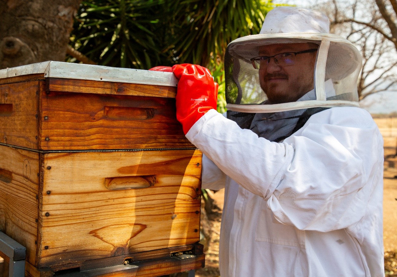 环境协调员 Carl Schoeman 负责管理普拉特瑞夫扩展中的养蜂项目,是艾芬豪矿业对于生物多样性和可持续农业的一项承诺。养蜂项目于2024年取得显著增长,在 New Horizon 养蜂场的蜂箱数量从仅仅5个增加至60