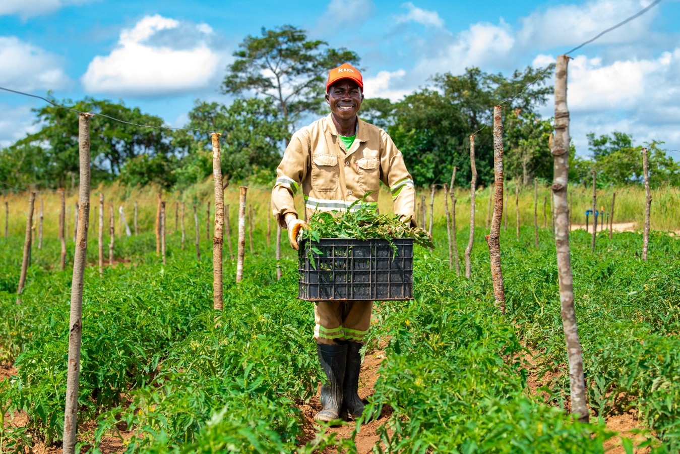 当地居民 Ferdinand Mutumba 在社区花园种植番茄,作为基普什新开展的可持续民生计划” 的一部分。