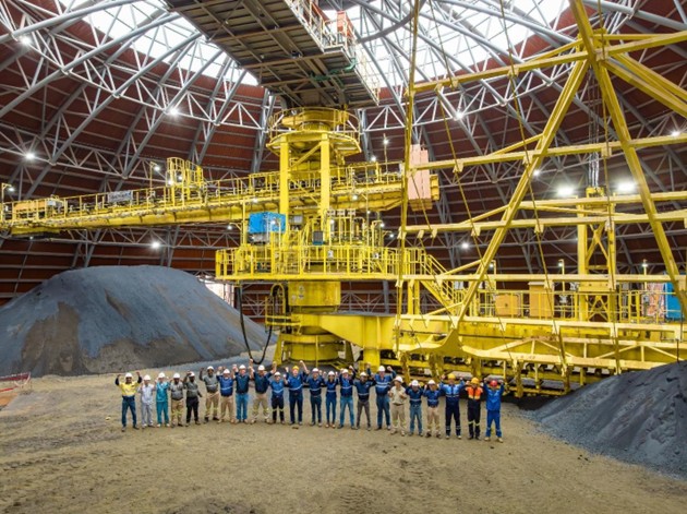 卡莫阿–卡库拉的高管和项目团队庆祝矿山现场的铜冶炼厂竣工,以及从卡莫阿–卡库拉矿山向混矿仓供给首批精矿。