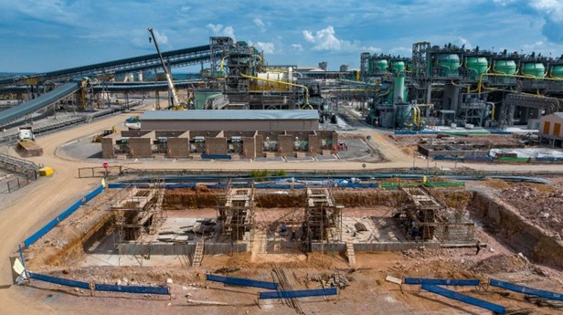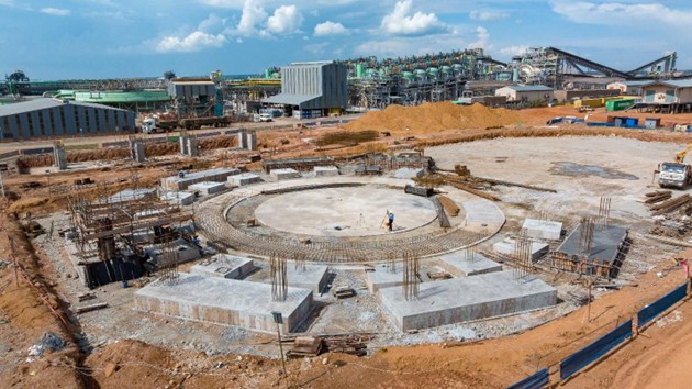 “项目95计划” 的土建工程进展顺利 (前),后方为 I 期和 II 期选厂。