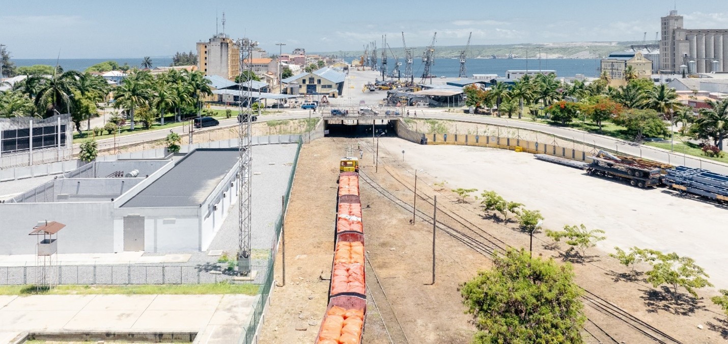 载装超过600吨铜精矿的第一辆列车,由16节车厢组成,已抵达安哥拉洛比托海港。