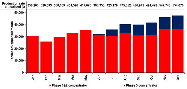 2﹕卡莫阿卡库拉自 2021 5 月投产至今的铜产量年度增长