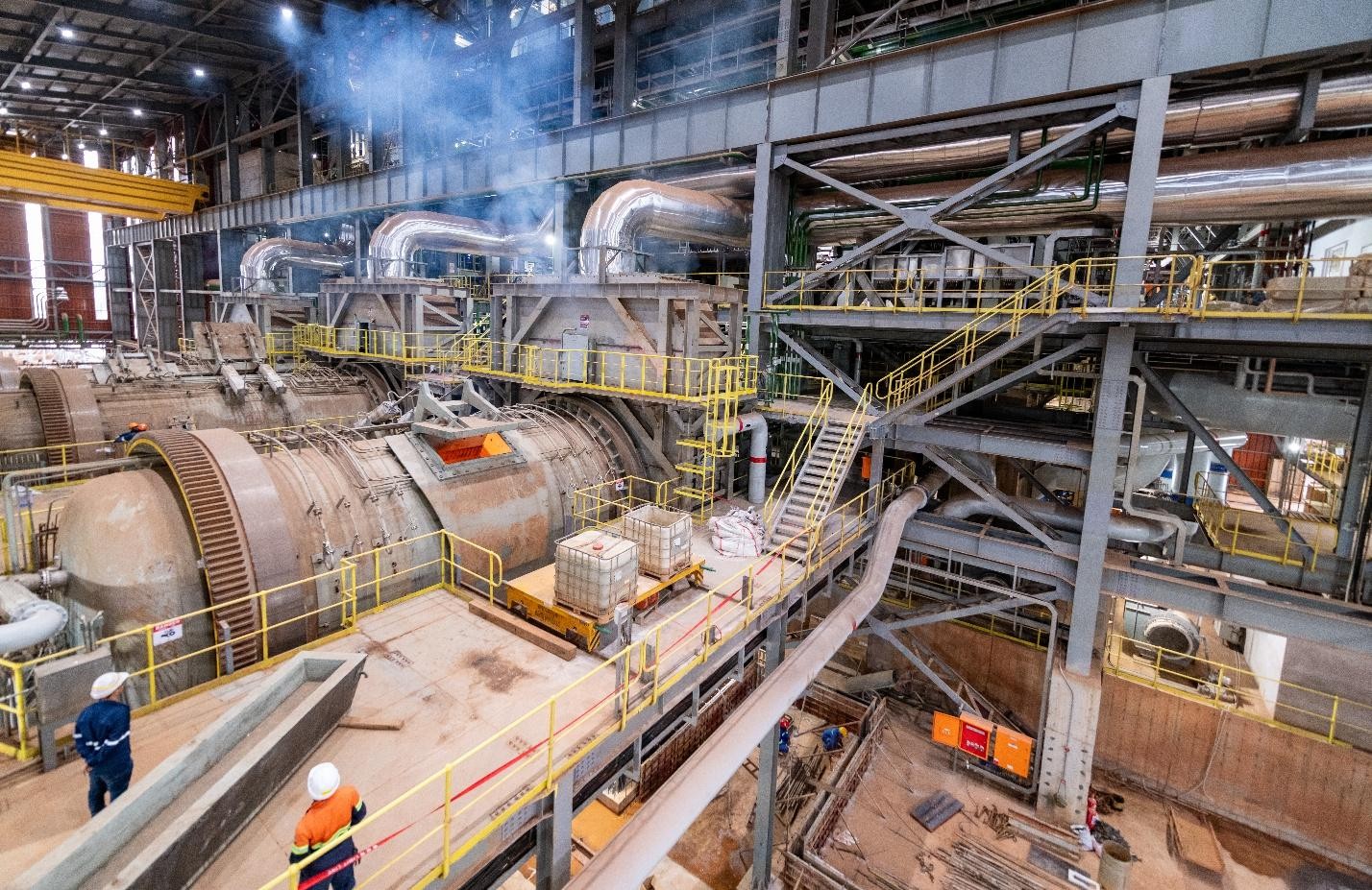 项目团队在非洲规模最大和最环保铜冶炼厂的新建熔炼炉设施内。
