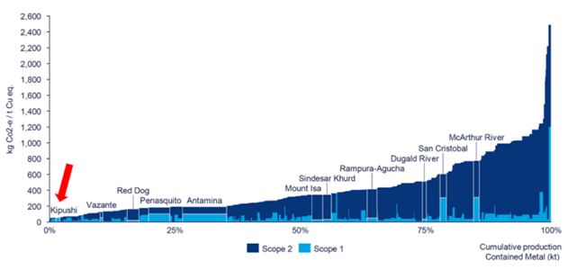 将使卡莫阿–卡库拉单位铜的碳排放 (范围一、二和三)