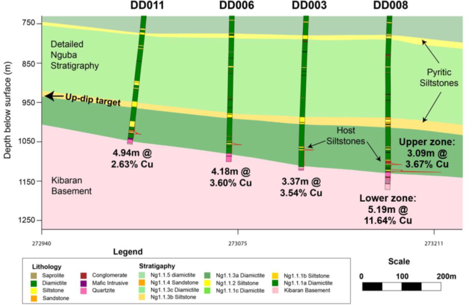 “我们期待艾芬豪矿业于来年继续领先行业,缔造突破性的发展。目前共有七台钻机在西部前沿进行钻探,日后还将调动更多钻机以扩大高品位Kitoko铜矿的资源范围,在西部前沿发现和开发新的世界级铜矿资源,为我们的股东带来最高的投资回报。我们刚从DD008钻孔钻出的矿块,再次确认了富铜矿化赋存在Kibaran基底之上,铜品位高达11%以上。”