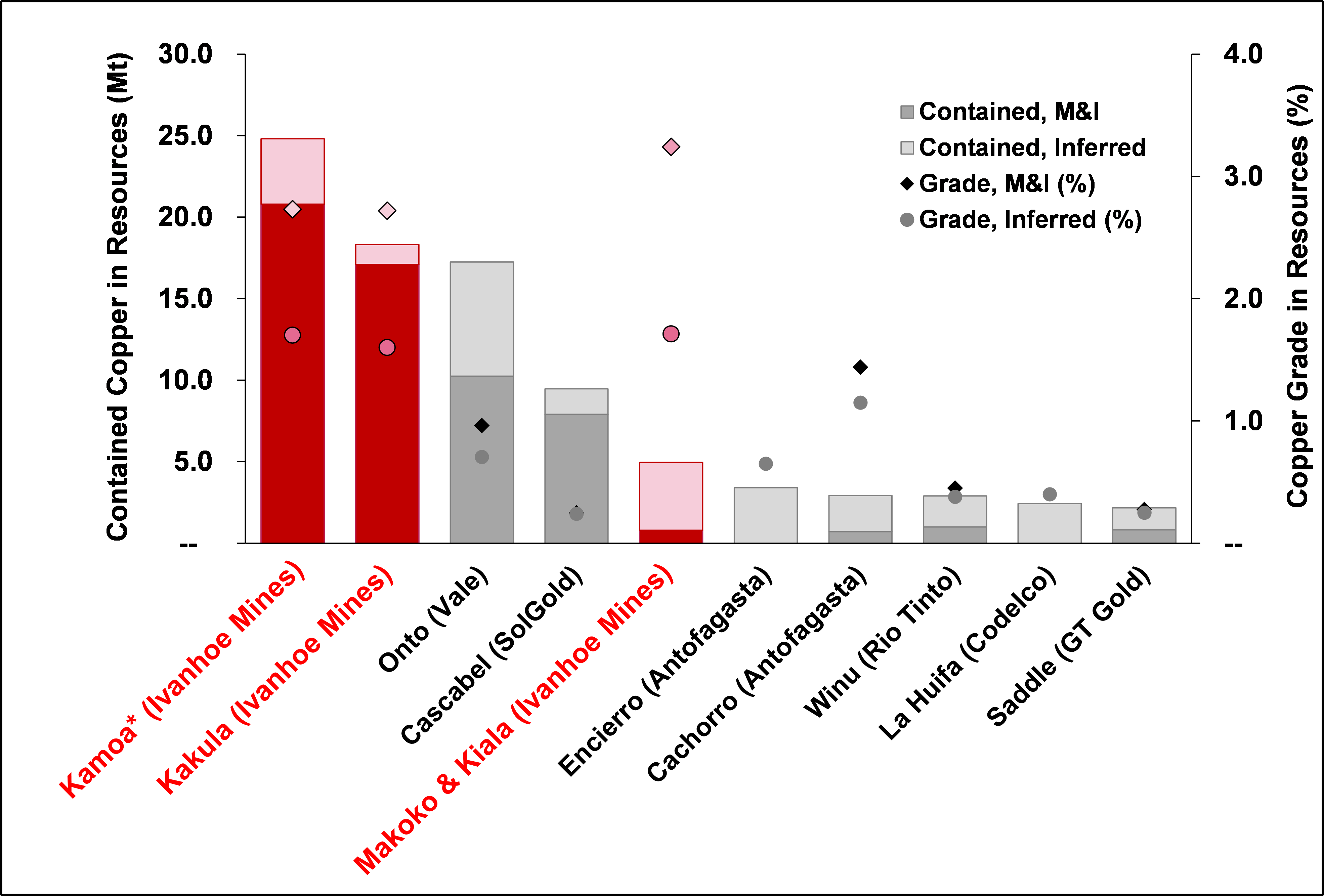 上述数字均以卡莫阿-卡库拉合资企业100%权益统计。