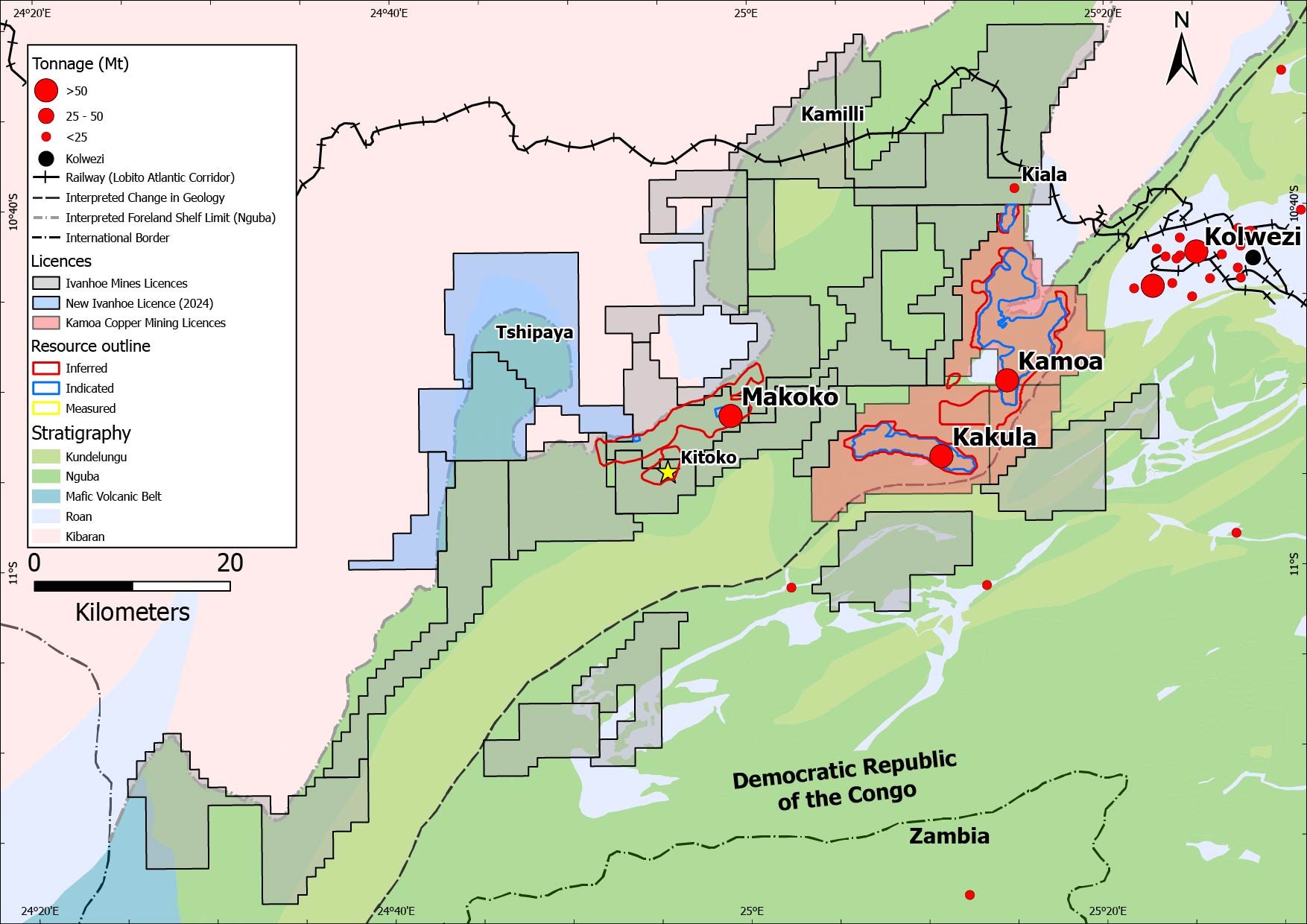 卡莫阿–卡库拉铜矿项目由艾芬豪矿业与紫金矿业的合资企业卡莫阿控股负责运营,项目位于中非铜矿带最西面的科卢韦齐 (Kolwezi) 以西南约25 公里,面积达 400 平方公里。