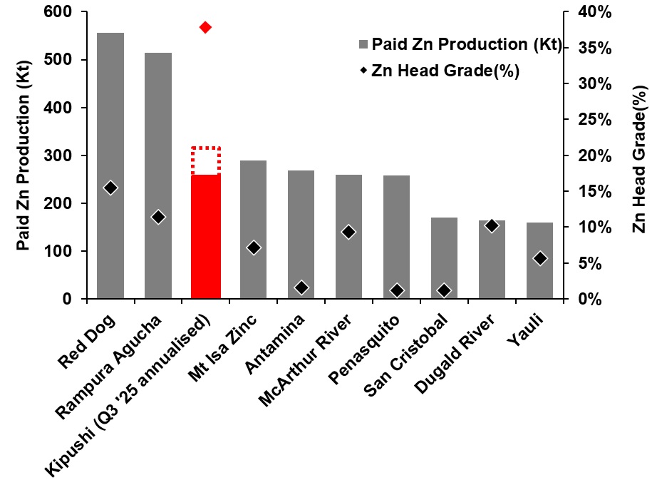 2025年第三季度,基普什破纪录产锌5.7万吨,