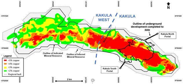 图1:卡库拉和卡库拉西区矿体,黑色粗线显示2021年以来的地下采矿工程范围。截至2025年5月,卡库拉和卡库拉西矿体的大部分范围仍未开采。