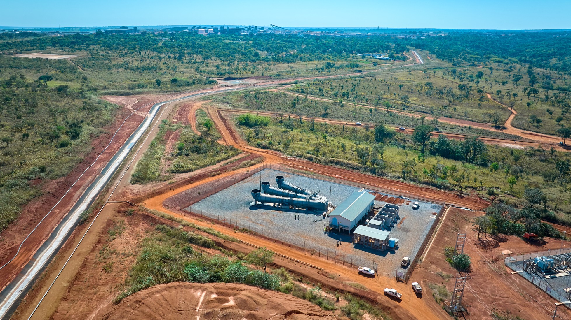 朝南看:将在两条竖井安装第二阶段可以从地面操作的抽水系统,在卡库拉矿山进行排水作业,排放至地表水道 (图右)。