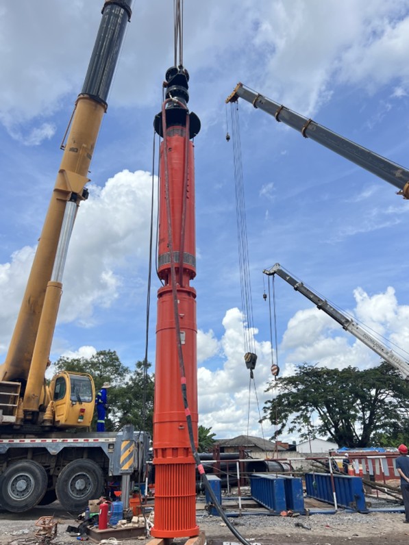 2024年9月,赞比亚卢安夏铜矿竖井安装的一台大功率井下水泵,与卡莫阿铜业订购用于卡库拉矿山的抽水设备型号相近。图片来源:中国有色矿业集团。