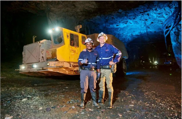 卡莫阿–卡库拉采矿团队成员,(从左至右) 采矿领班 Kalume Malidja 和采矿主管 Morné Du Plooy