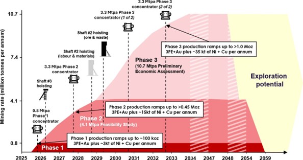 2025年2月18日公布普拉特瑞夫三期开发方案的两项独立研究,其中包括 II 期扩建将处理能力提升至410万吨/年的可行性研究更新,以及 III 期扩建将处理能力提升至1,070万吨/年的初步经济评价。两项研究取得了积极的成果,巩固了普拉特瑞夫跨世代矿山领先行业的利润率。