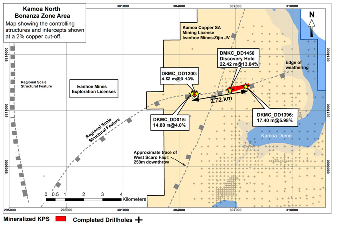 Significant new drilling intercepts at the Kamoa North Bonanza Zone include: