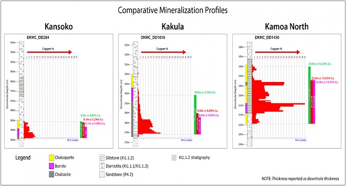 Figure 6: Comparative copper grade profiles from Kansoko, Kakula and Kamoa North discoveries.