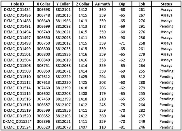 *All collars surveyed by differential GPS except DKMC_DD1522.