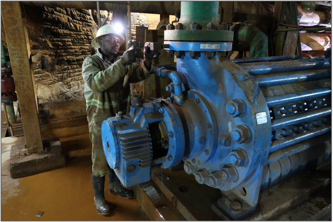 Figure 3. Connecting discharge pipes to one of five pumps on the 1,200-metre-level.