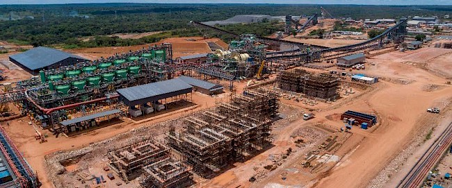 Kamoa-Kakula’s Phase 1, 3.8-Mtpa concentrator and foundations for the Phase 2 concentrator.
