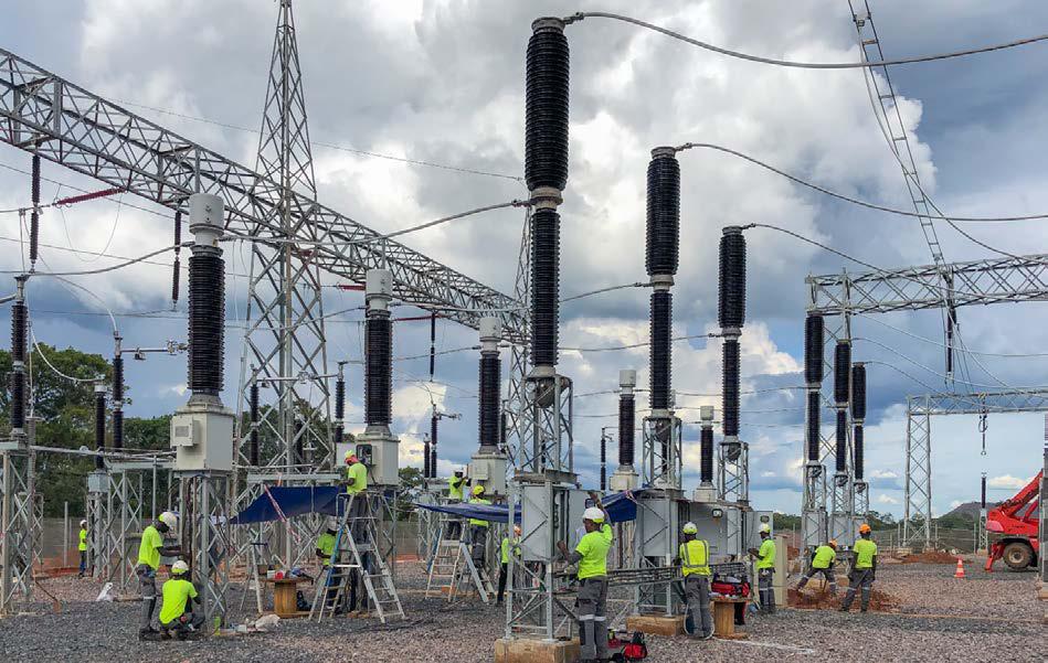 Electricians from CEGELEC, a French engineering company, putting the finishing touches to Kakula’s 220-kilovolt main substation.