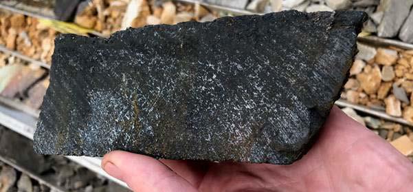 Chalcocite-rich core sample from a drill hole completed in 2020 at the Kamoa North Bonanza Zone. This sample graded 53% copper.