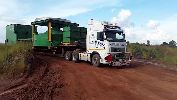 The first oversized loads of equipment for Kakula’s initial 3.8 Mtpa processing plant module being transported from Kolwezi to Kamoa-Kakula on the newly constructed road. The equipment, which has been delivered to site, is two low-entrainment flotation cells (Jameson cells) that will be used as cleaner cells to produce a final copper concentrate, before thickening and filtration. This is the first of at least 25 oversizedloads of equipment that are scheduled to be delivered to Kamoa-Kakula in the coming months.