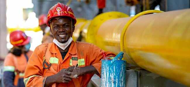 Jack Shongo completing the painting of pipes at the concentrator plant.
