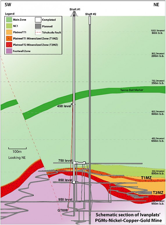 The mining zones in the current Platreef mine plan occur at depths ranging from approximately 700 metres to 1,200 metres below surface.