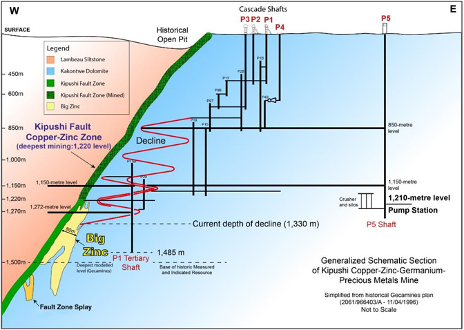 Figure 2: Schematic underground section of the Kipushi Mine.