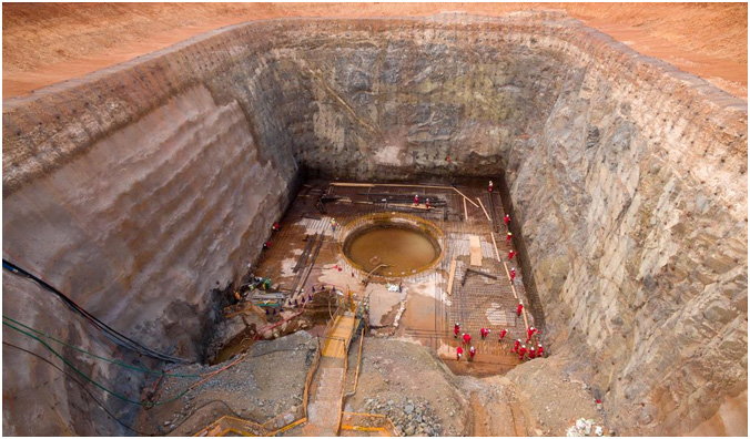 Ongoing construction of the foundation that will support Shaft 2’s 103-metre-tall concrete headframe.