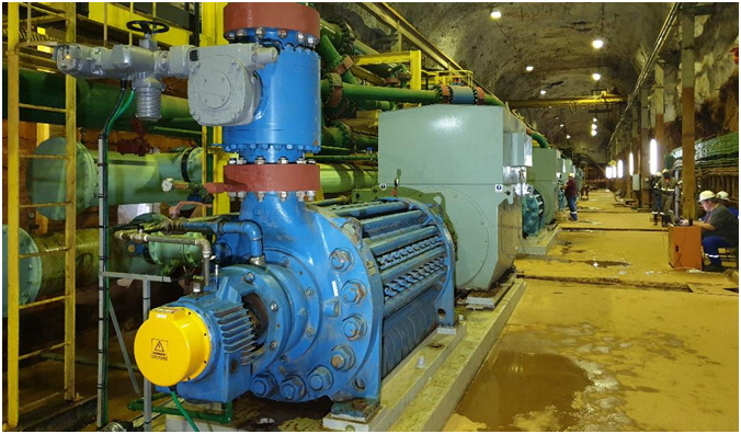 Start-up and testing of the five, high-capacity pumps at Kipushi’s upgraded water-pumping station on the 1,210-metre level.