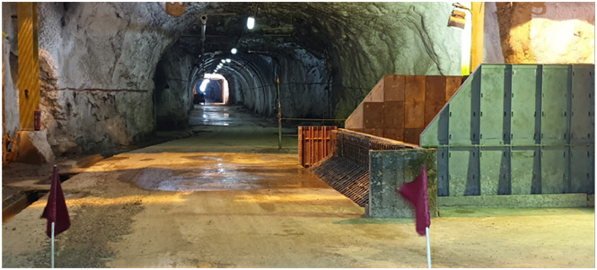 The main haulage way on the 1,150-metre level between the Big Zinc access decline and Shaft 5 rock load-out facilities has been resurfaced with concrete so the mine now can use modern, trackless, mobile machinery. A new truck-tipping bin, which feeds into the large-capacity rock crusher located directly below, has been installed on this level.