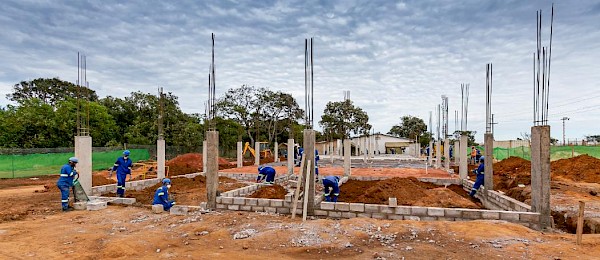The new primary healthcare wing of the Kamoa hospital under construction.
