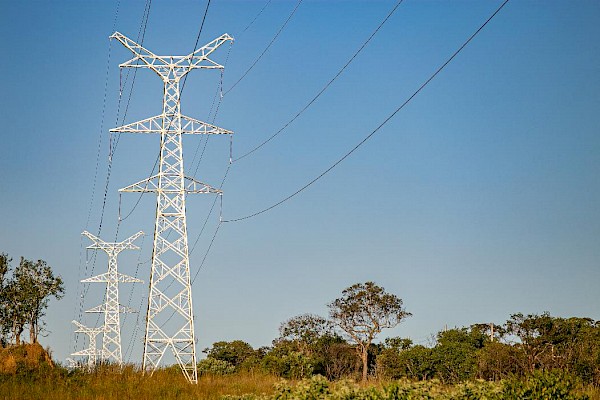Towers along the new 35-kilometre, 220-kV power line connecting the new Western Dispatch substation in Kolwezi to Kamoa-Kakula, supplying the project with reliable and clean hydro-generated electricity from the national grid.