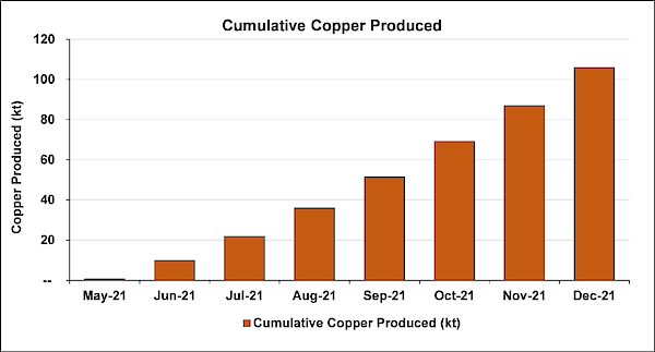 Chart 1: Cumulative tonnes of copper produced from May 2021 to December 31, 2021.