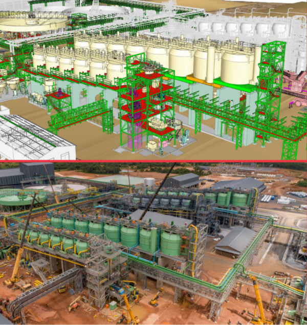 A 3D illustration of Kamoa-Kakula’s Phase 2 concentrator flotation cells. The picture below shows the current progress, which is approximately 80% complete.