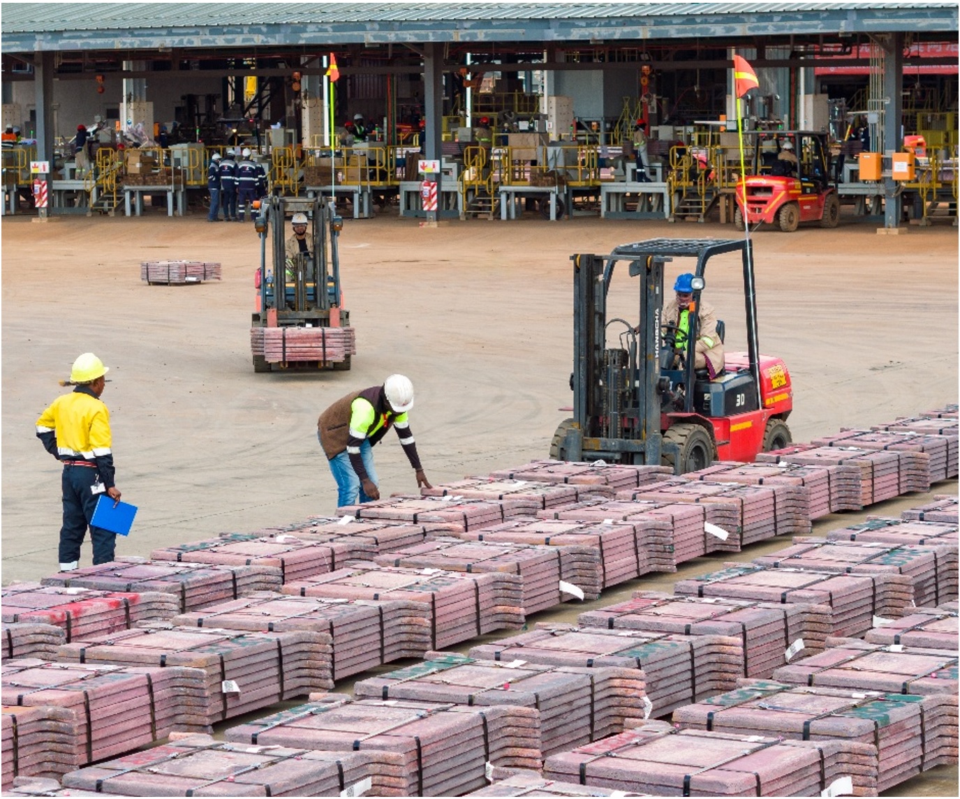 99.7%-pure copper anodes are inspected in the anode yard of the smelter prior to loadout and export.