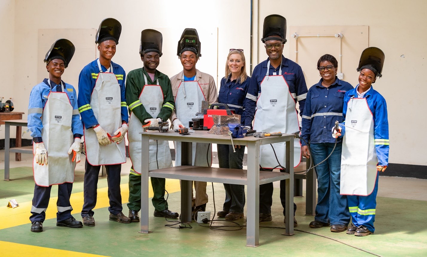Local students of the Kaponda Technical workshop alongside members from the Kamoa-Kakula sustainability team.
