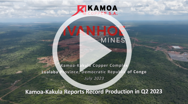 KOLWEZI, DEMOCRATIC REPUBLIC OF CONGO – Ivanhoe Mines (TSX: IVN; OTCQX: IVPAF) Executive Co-Chair Robert Friedland and President Marna Cloete are pleased to announce that the Kamoa-Kakula Copper Complex in the Democratic Republic of Congo (DRC) produced a record 103,786 tonnes of copper in concentrate during the second quarter of 2023.