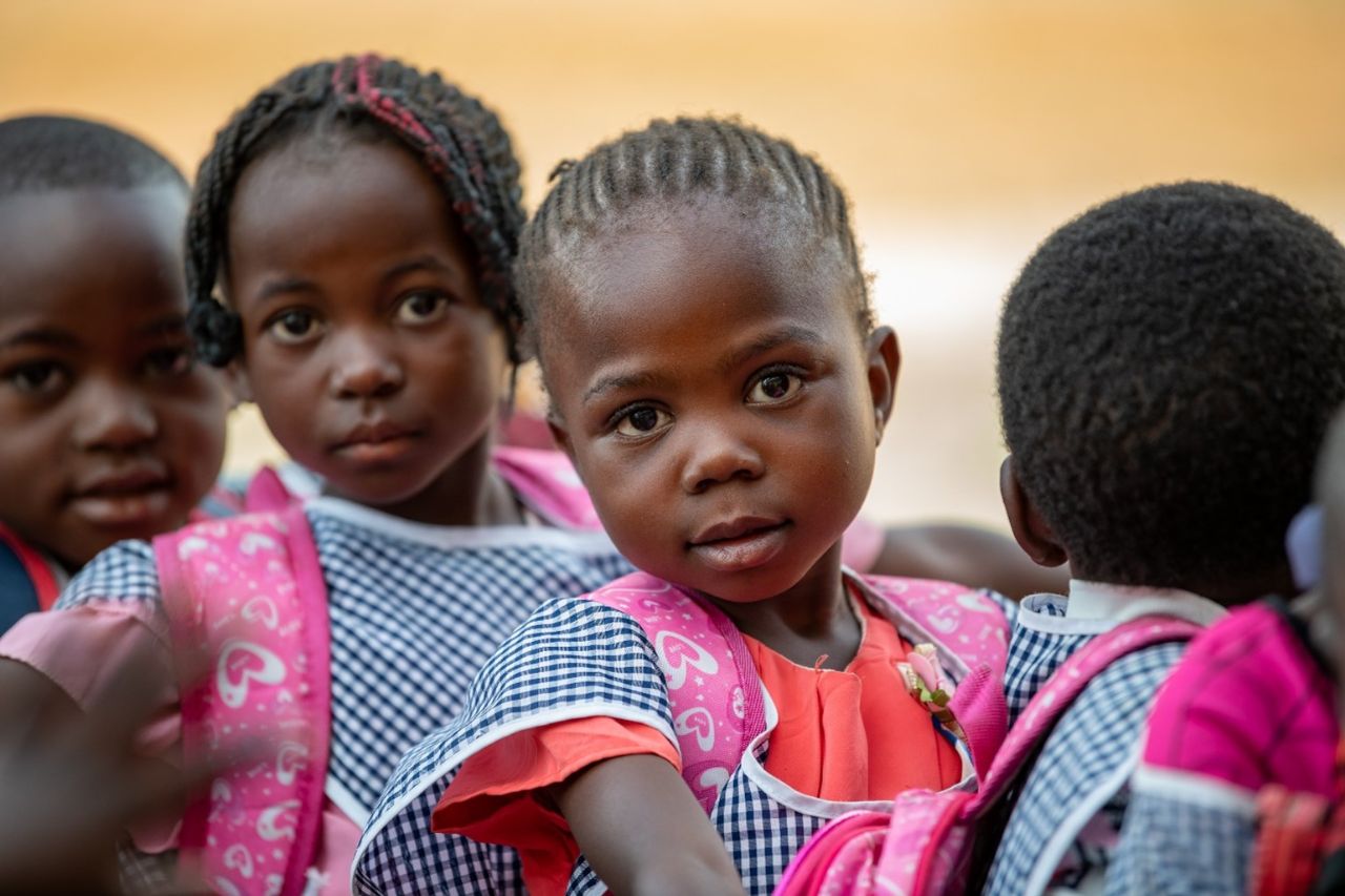 Children at the Early Childhood Development (ECD) centre in the community of Muvunda commemorating the end of the school year. Muvunda is the third local community in which Kamoa-Kakula has built an ECD centre since 2022.