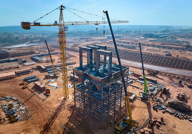 Steel erection of Kamoa-Kakula’s direct-to-blister flash furnace and the electric slag cleaning furnace. The 500,000 tonnes-per-annum copper smelter, will be the largest in Africa and one of the largest in the world.