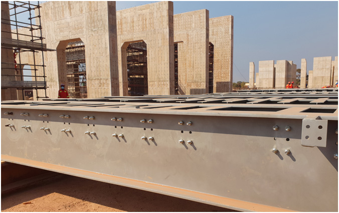 Structural steel beams that will be used in the processing plant’s flotation circuit that were delivered to the Kakula Mine in early June.