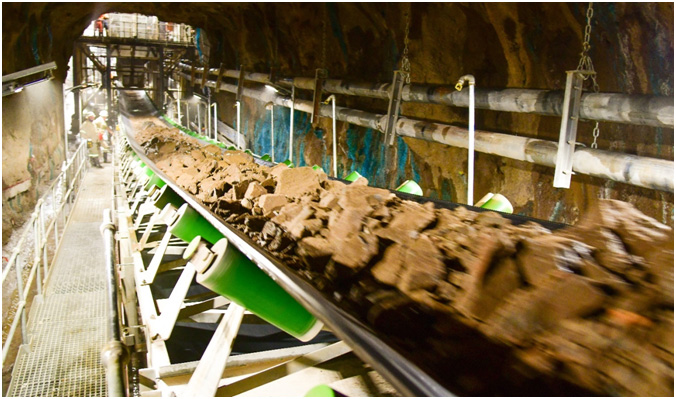 Kakula’s first ore being transported to surface on the new conveyor system.